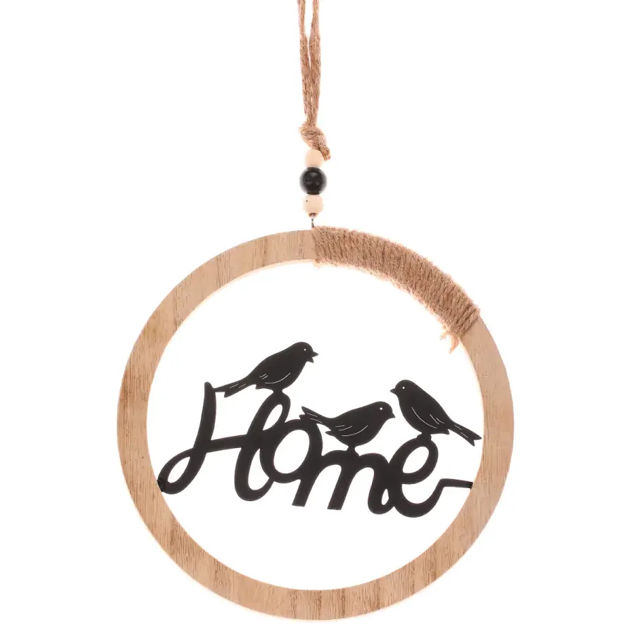 Představujeme dřevěný závěsný kruh KLS2078, stylovou dekoraci z přírodního materiálu, která dodá interiéru teplou a pohodovou atmosféru. Uprostřed kruhu se těšíte na roztomilé ptáčky a nápis HOME v černé barvě, čímž vzniká harmonický vizuální akcent. Díky neutrálnímu provedení se snadno sladí s různými styly a hodí se do vstupní haly, obývacího pokoje i kuchyně. Snadno ho zavěsíte na provázek a okamžitě oživíte jakýkoli pokoj. Kromě estetiky vyniká i svou univerzálností: skvěle se kombinuje s přírodními doplňky a světlými i tmavšími odstíny dřeva, čímž podtrhuje útulnost domova. Pro ještě výraznější efekt stačí doplnit jemnými bylinkami či svíčkou, které dotvoří klidnou a hřejivou atmosféru.