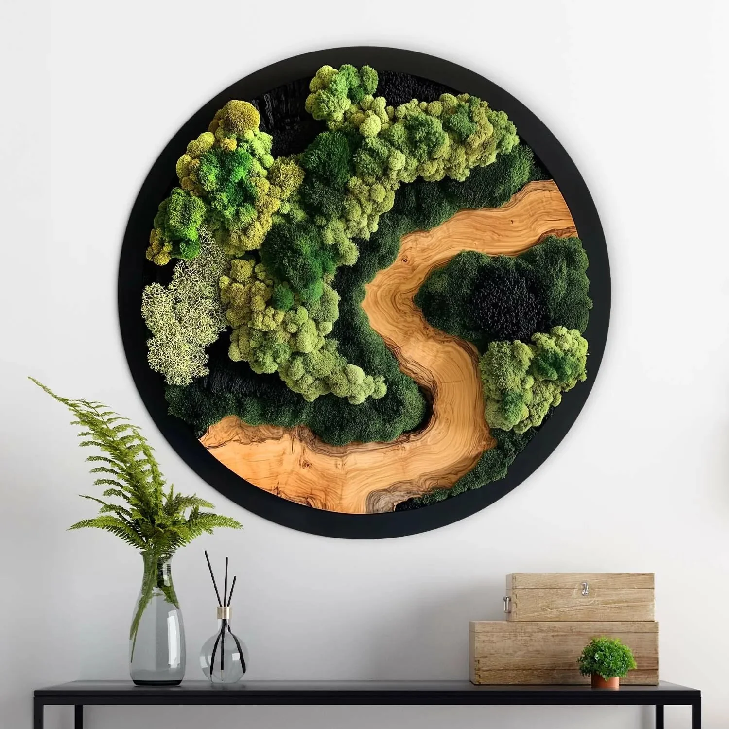Obraz Rin no Mori, což v japonštině znamená Poklidný les, představuje luxusní dekoraci na dřevěném podkladu, která věrně napodobuje strukturu mechu a dřeva. Jeho harmonické uspořádání evokuje klidnou lesní stezku obklopenou zelení, čímž do vašeho interiéru vnáší pocit pohody a přírodní harmonie.