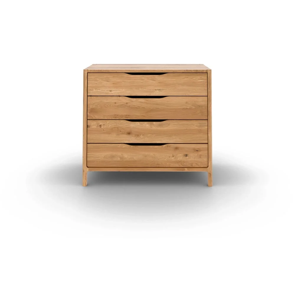 Elegantní nízká komoda vyrobená z kvalitního dubového dřeva v přírodní barvě nabízí praktické úložné prostory a moderní vzhled. S rozměry 95x80 cm je ideální do obývacího pokoje nebo ložnice, kde skvěle zapadne do různých interiérových stylů.