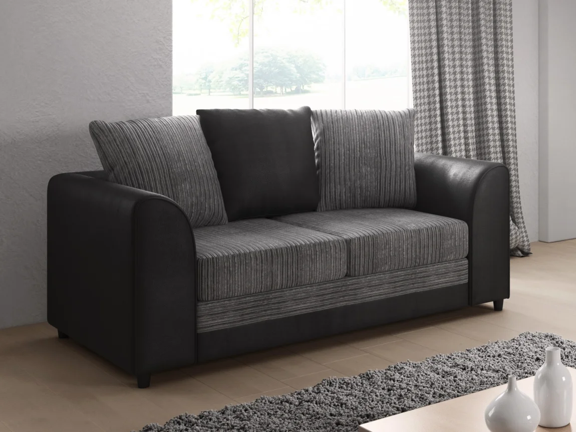 WELLS 2 nabízí stylový dvojsedák s dvoubarevným zpracováním potahu. Jemný šedý Jumbo Grey s strukturou manšestru doplňuje černý potah Viper Black, který působí jako ekokože a dodává eleganci.