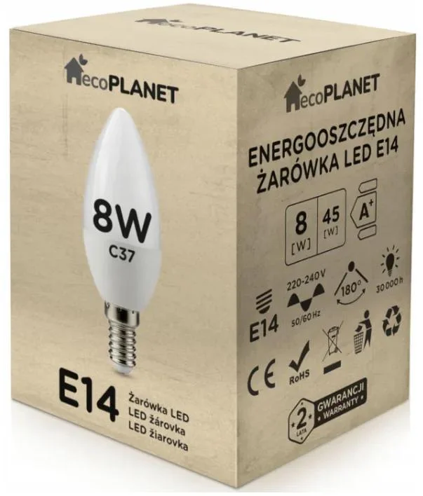 Ušetřete energii s ekologickou LED žárovkou ecoPLANET E14 s výkonem pouhých 8 wattů, přesto poskytující jasný světelný tok 700 lumenů ve studené bílé barvě. Tato LED žárovka je ideální volbou pro všechny domácnosti či kanceláře, které hledají efektivní a dlouhotrvající osvětlení.