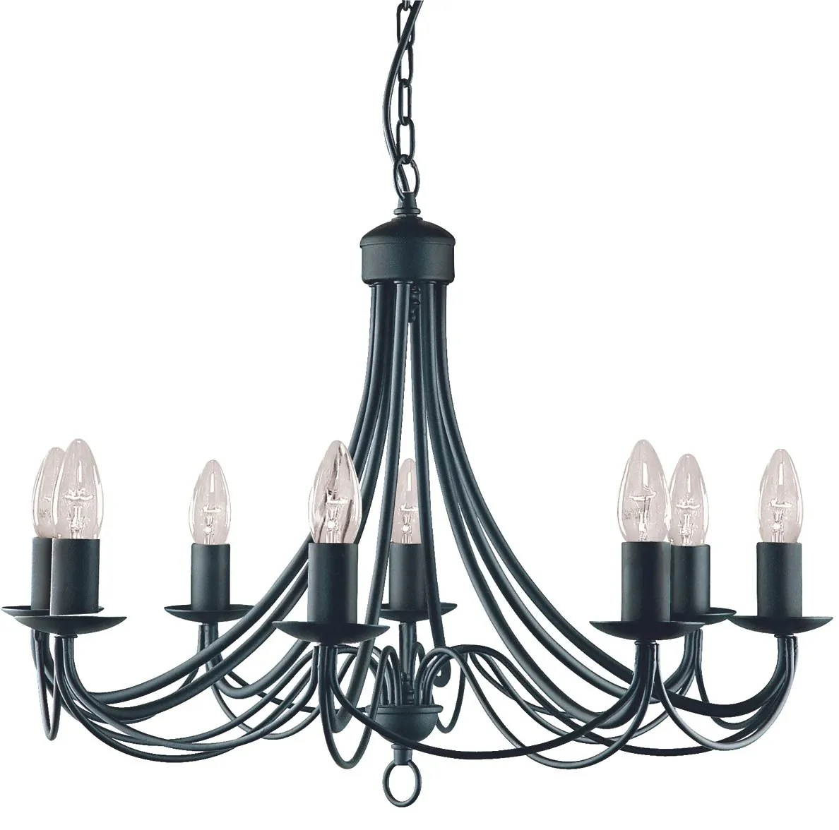 Objevte sofistikovanou eleganci s lustrem Maypole od značky Searchlight, který přetváří klasické lustry na osm svíček v moderním pojetí. Tento nádherný kousek upoutá svými elegantně zakřivenými rameny a stylovým černým povrchem.