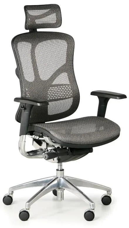 Pokročilé 3D plastové opěrky rukou umožňují nastavení výšky, hloubky a úhlu rotace podle vašich potřeb. Sedák s rozměry 54 cm na šířku a 45–51 cm na hloubku je doplněn opěradlem s nastavitelnou výškou mezi 60 a 64 cm. Židle disponuje pevným hliníkovým křížem a má nosnost až 150 kg. Je vybavena kolečky, které jsou ideální pro měkké podlahy jako koberce nebo linoleum. Úhlově a výškově nastavitelná hlavová opěrka a pevná bederní opěrka zajišťují optimální podporu. Tato židle je ideální volbou pro ty, kteří hledají maximální pohodlí a funkčnost při dlouhých hodinách práce.