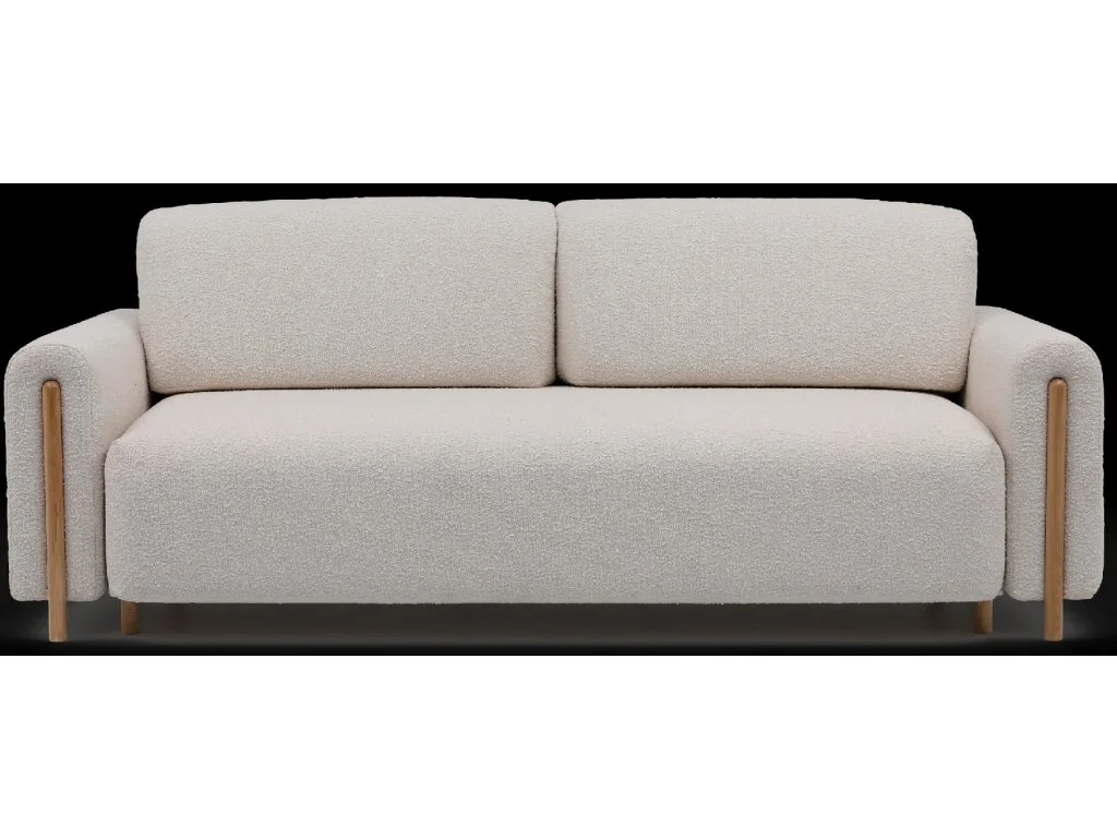 Sedák je měkký a výplň opěradla zajišťuje pevnou oporu zad. Půlkruhové područky dodávají pohovce charakter a dodávají jí výrazný designový detail. Nohy z masivního dřeva v černé barvě, vysoké 12 cm, vytvářejí stabilní základnu a podtrhují její elegantní vzhled. Jedná se o kousek, který spojuje styl s pohodlím a je ideální pro odpočinek v obývacím pokoji; díky svému univerzálnímu designu se hodí do mnoha různých uspořádání interiéru. Navíc ji lze snadno kombinovat s různými textiliemi a doplňky, díky čemuž ladí s vaším stylem bydlení.