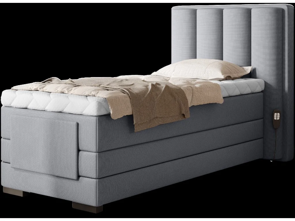 Elektrická postel Veros umožňuje plně ovládat komfort odpočinku díky motorizovanému polohovatelnému rámu, který umožňuje snadno nastavit polohu hlavové i nožní části. Dálkové ovládání je součástí balení a u jednolůžkové verze je dodán jeden ovladač, takže změnu polohy lze provést bez vstávání. Postel kombinuje dvě hlavní matrace (bonellová a taštičková) s horní topper, který zvyšuje měkkost a chrání matrace před nečistotami i poškozením. Topper navíc disponuje snímatelným potahem Silk, který lze prát v pračce. Celé čalouněné zadní čelo umožňuje postavit Veros i do středu místnosti a stát se středem ložnice. Černé nožky dodávají neutrální, univerzální vzhled, který ladí s různými interiérovými styly. Veros je dostupný ve čtyřech rozměrových verzích ložné plochy: 90×200 cm, 140×200 cm, 160×200 cm a 180×200 cm, takže si ji snadno vyberete podle prostoru a potřeb. Ideální volba pro páry i jednotlivce, kteří ocení flexibilitu nastavení a skutečný komfort během spánku.