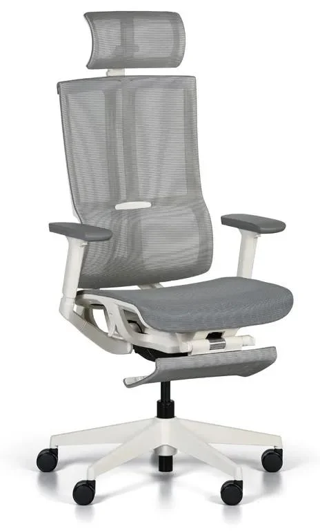 Synchronní mechanika umožňuje plynulé přizpůsobení sklonu opěráku a sedáku, čímž zajišťuje správnou ergonomii a pohodlí. Moderní 3D područky s možností nastavení výšky, hloubky a rotace poskytují maximální podporu zápěstí a paží. Sedák široký 54 cm a hluboký 51 cm spolu s opěrákem vysokým 61 cm jsou navrženy tak, aby splnily potřeby různých postav. Nosnost do 150 kg a pevná plastová konstrukce s křížem garantují stabilitu a dlouhou životnost. Kolečka vhodná na tvrdé podlahy umožňují snadnou manipulaci. Nastavitelná hlavová opěrka a pevná bederní opěrka poskytují správnou oporu pro krční a bederní páteř, čímž přispívají ke zdravému sezení. Tato židle je skvělou volbou pro všechny, kteří hledají spojení komfortu, moderního designu a ergonomického řešení pro pracovní prostředí.