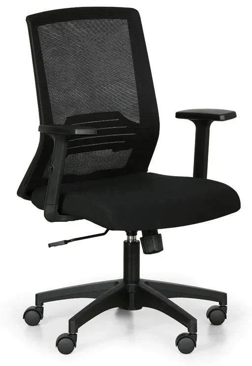 Moderní židle START v elegantní černé barvě je navržena pro maximální komfort při dlouhodobé práci. Sedák s pohodlným čalouněním z látky a prodyšný opěrák ze síťoviny zajistí správnou cirkulaci vzduchu a pohodlí.
