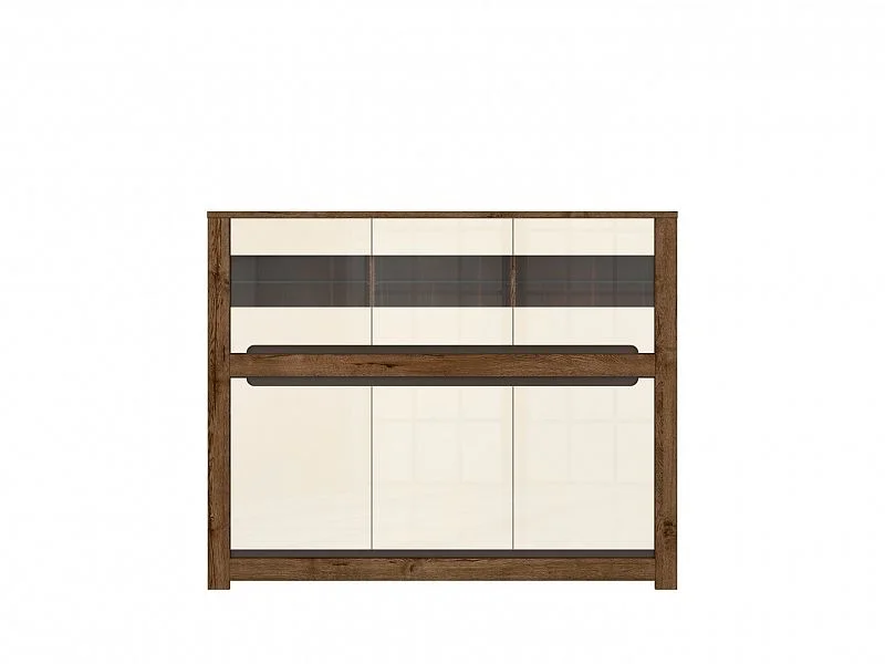Patří do sektorové řady a kombinuje prosklenou část s elegantním vzhledem. Dvířka jsou částečně z tvrzeného skla, díky čemuž máte výhled na vystavené předměty a zároveň je chráníte před prachem.