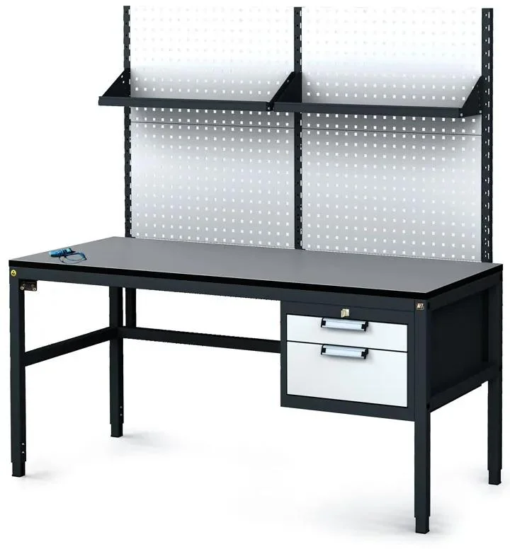 Parametry produktu ESD dílenský pracovní stůl s perfopanelem a úložnými prostory