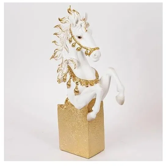 Stylová stolní soška představující majestátní hlavu a část těla vzpínajícího se koně, vyrobená z kvalitní umělé pryskyřice s precizním detailem. Ideální jako elegantní doplněk do obývacího pokoje, pracovny nebo jiné místnosti, který dodá prostoru nádech luxusu a sophistication.
