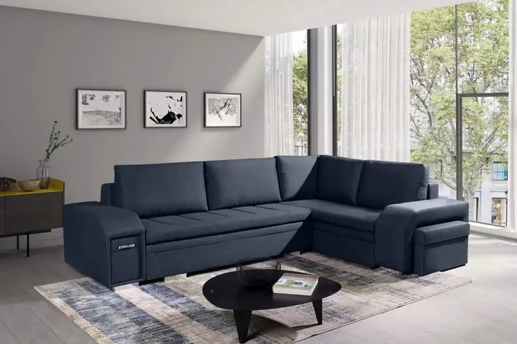 Sedací souprava Alana od Falco spojuje skutečný komfort s promyšlenou praktikou pro každodenní provoz. Díky rozkládacímu mechanismu slouží jako pohodlné lůžko pro návštěvy a zároveň nabízí flexibilní úložné prostory, které lze integrovat do různých částí soupravy – v područkách i v taburetu, jenž lze zasunout do druhé části. Celé čalounění je celočalouněná a vhodná i pro volné umístění v prostoru. Výplň sedáků tvoří kombinace pružin a kvalitní PUR pěny, která spolu s velkými opěrnými polštáři zajišťuje dlouhodobé pohodlí. Vzor látky je znázorněn na doplňkových fotografiích; finální odstín se může mírně lišit podle dodaného materiálu. Dekorační doplňky na vizuálech nejsou součástí ceny. Rozměry: šířka 205 cm, délka 305 cm, výška 90 cm; výška sedu 42 cm; výška područek 56 cm; výška opěráku 53 cm; hloubka sedu k polštáři 56 cm. Hmotnost 200 kg, úložný prostor ANO, záruka 2 roky. Rozkládací plocha pro spaní 150x250 cm.