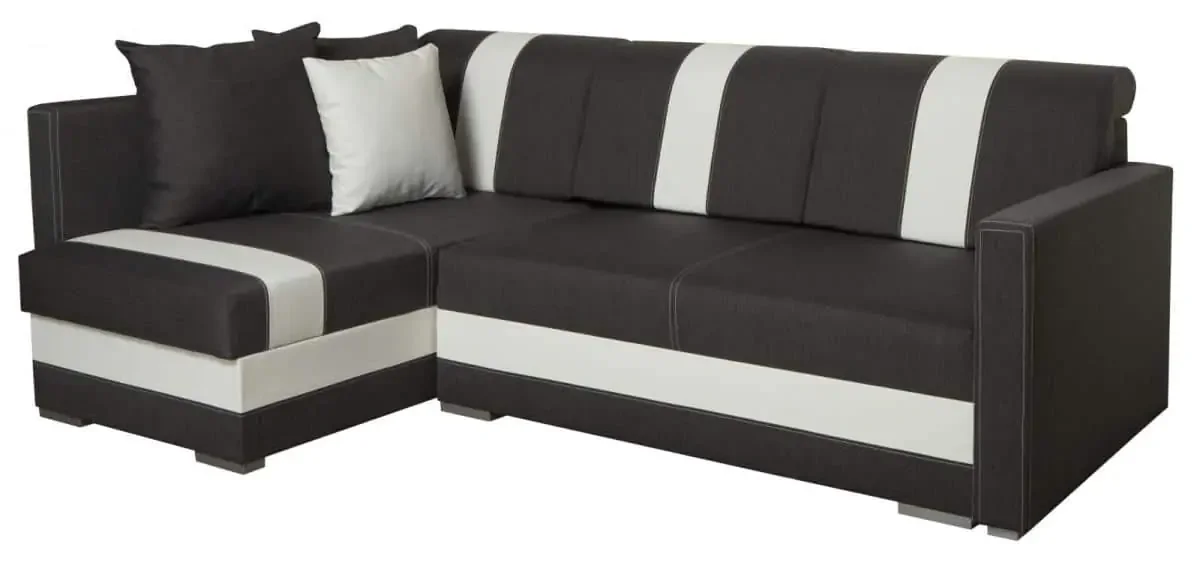 Rohová sedací souprava Alba se vyznačuje čistým a nadčasovým designem, který se hodí do jakéhokoli interiéru a během chvilky oživí váš obývací pokoj. komfort při sezení zajišťuje kombinace vlnových pružin, bonellových pružin a kvalitní PUR pěny, díky nimž posezení zůstává příjemné i při delším užívání. Díky praktické rozkládací funkci lze vyřešit občasné spaní; po rozložení vznikne prostorné lůžko a navíc je k dispozici úložný prostor pro lůžkoviny. Čalounění kombinuje jednobarevný materiál s dekoračními pruhy z eko kůže, což podtrhuje moderní vzhled. Součástí balení jsou tři velké opěrné polštáře a tři menší dekorační polštáře, které lze snadno sladit s vaším interiérem; přesné rozměry najdete na doplňujících fotografiích.