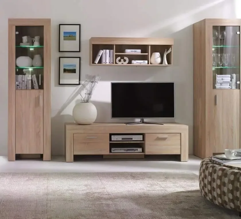Obývací stěna Cezanne je vyrobená z kvalitního lamina v odstínu Sonoma, který dodává interiéru teplý a nadčasový vzhled. Vitríny lze doplnit LED osvětlením, které není součástí balení a je nutné dokoupit zvlášť. Díky modulární konstrukci lze sestavu snadno přizpůsobit prostoru a podle potřeby ji využít i v ložnici či pracovně. Všechny díly setu lze objednat samostatně, takže si můžete vytvořit vlastní uspořádání dle svého vkusu; součástí balení je montážní plán a veškerý spojovací materiál. Dekorace na fotkách nejsou součástí nabídky. V ceně sestavy jsou levá vitrína, TV stolek, police a pravá vitrína. Rozměry jednotlivých dílů: vitríny 60 x 201 x 42 cm (š x v x h), TV stolek 170 x 51 x 52 cm, police 120 x 40 x 25 cm.