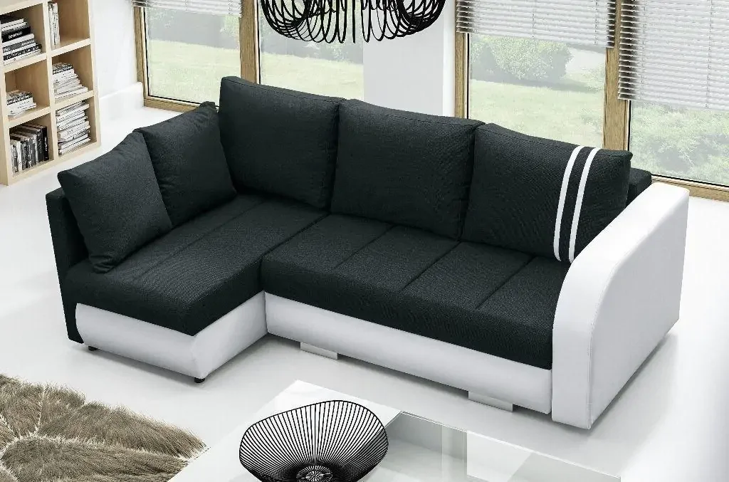 Výplň sedáku tvoří kombinace faliste pružin a kvalitní PUR pěny, která zajišťuje komfortní sezení. Sedačka je potažena kvalitní látkou v kombinaci s bílou EKO kůží, díky čemuž působí elegantně a moderně. Dostupná je v několika barevných variantách. V ceně sedací soupravy je 5 opěrných polštářů; ostatní dekorace na fotografiích nejsou součástí ceny. Její materiály zajišťují dlouhodobou odolnost a snadnou údržbu, díky čemuž si sedací souprava zachová svůj vzhled i po letech.