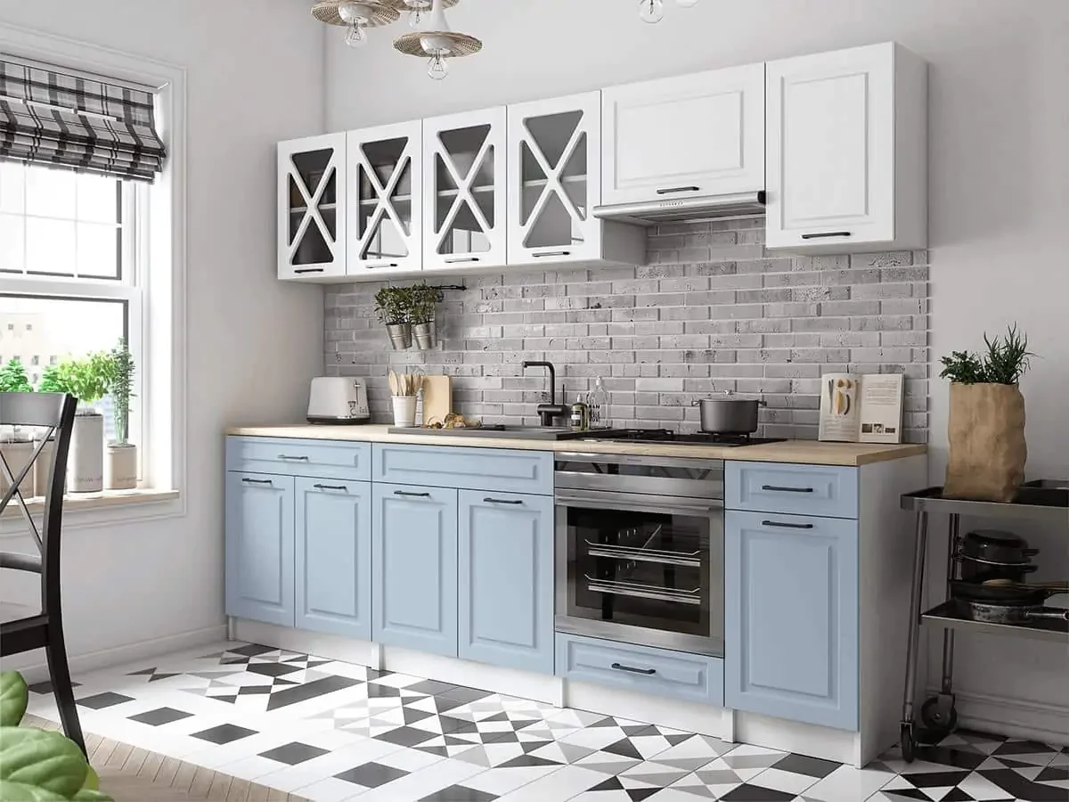 Parametry produktu Falco Gréta 260 cm – Kuchyňská linka MAT bílá / světle modrá