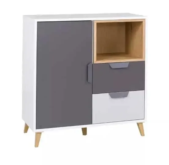 Komoda Poker R9 je vyrobená z lamina a k dispozici ve svěžích dekorech bílá, grafit, šedá a dub Lefkas, které se hodí do rozličných stylů interiéru. Lamino je známé svojí odolností a snadnou údržbou, což zajistí dlouhou životnost nábytku. Vybavení komody zahrnuje kombinace dvířek, polic a šuplíků, takže nabídne dostatek místa pro věci i drobnosti. Dodáváme ji v demontovaném stavu s podrobným návodem a veškerými spojovacími prvky pro rychlou montáž; vyobrazené dekorace nejsou součástí balení. Propojení flexibility a efektivního uspořádání dělá z Poker R9 ideální volbu pro dětský i obývací pokoj a umožňuje šetřit prostorem i v menších bytech.