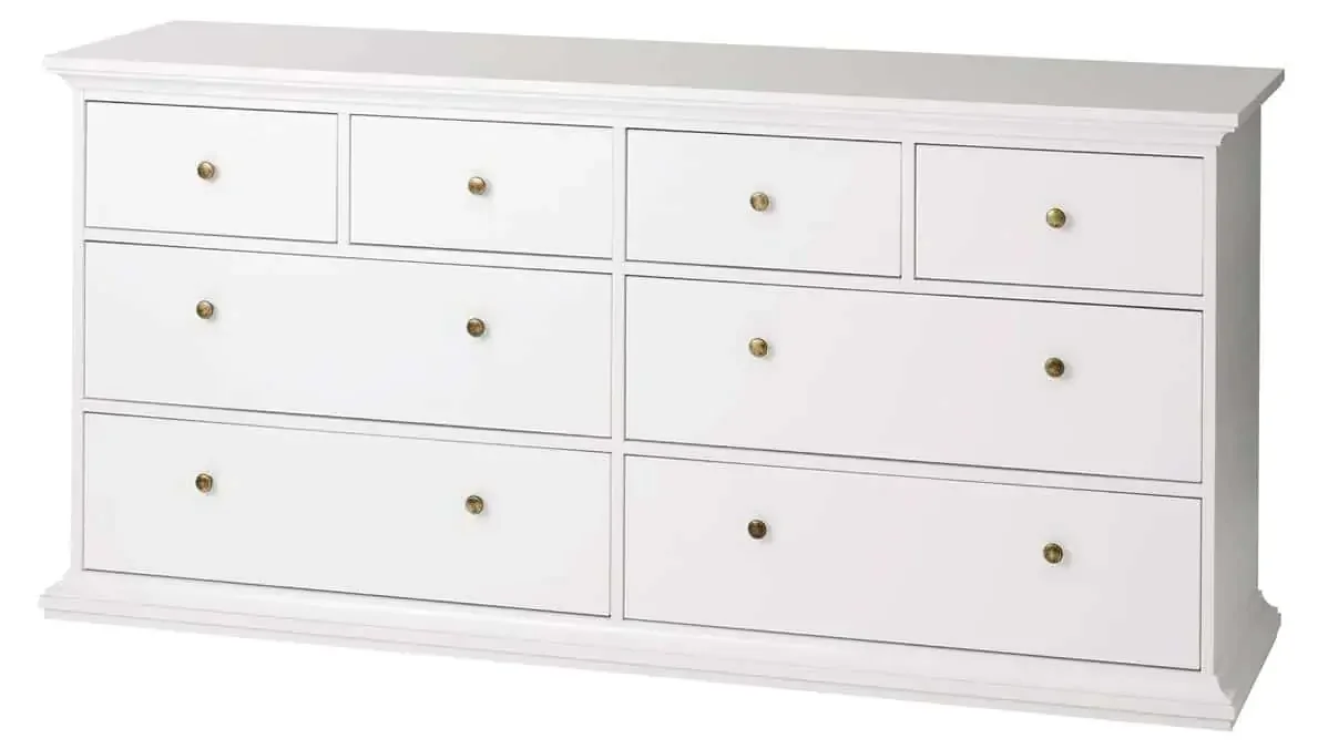 Kolekce Provence je určena pro milovníky romantického stylu nábytku, který dodává interiéru jemný vintage nádech. Komoda Falco Provence 719 je vyrobena z lamina o tloušťce 18 mm a klade důraz na pevnost a dlouhou životnost. Kovové úchyty v mosazné barvě a obloukové výřezy na horní i spodní části podtrhují starožitný vzhled a charakter kousku. Díky široké nabídce dílů ji lze sladit do obývacího pokoje, jídelny, ložnice, kanceláře, dětského či studentského pokoje i předsíně; inspiraci najdete na ukázkách sestav. Nábytek se dodává demontovaně a v balení naleznete montážní plán a veškeré spojovací materiály; dekorace na fotografiích nejsou součástí ceny. Zboží je dodáváno z Dánska, proto doporučujeme ověřit aktuální dostupnost.