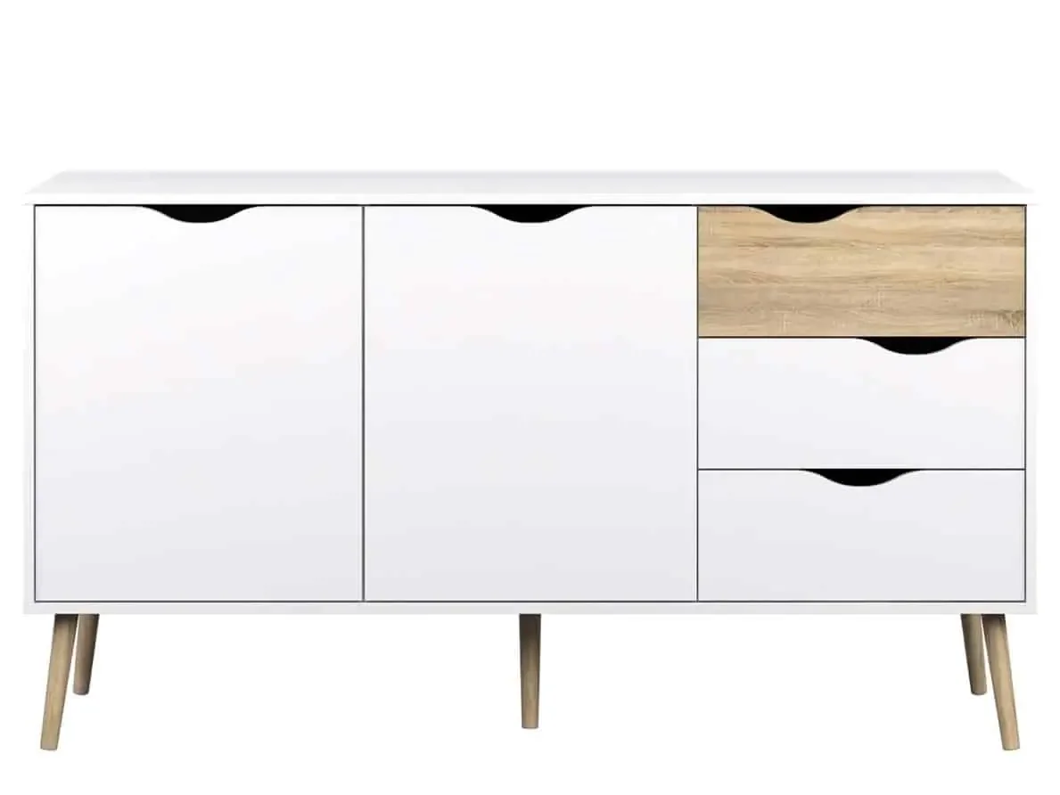 Milujete Retro styl? Tato komoda z kolekce Falco kombinuje nadčasový vzhled s praktickým úložným prostorem. Je vyrobena z lamina o síle 18 mm a charakteristickým prvkem jsou vysoké šikmé nožky v odstínu dub a obloukové výřezy namísto tradičních úchytek. Díky široké škále možných sestav ji snadno zařadíte do obývacího pokoje, jídelny, ložnice, pracovny i předsíně. Dodávána je v demontu a součástí balení je montážní plán spolu se všemi potřebnými spojovacími materiály. Vyobrazené dekorace nejsou součástí ceny. Nábytek je dodáván z Dánska, proto doporučujeme ověřit aktuální dostupnost. Tato komoda má univerzální využití a poskytuje dostatek prostoru pro vaše věci. Snadná údržba a nadčasový design z ní dělají ideální volbu pro každou místnost. Navíc se skvěle hodí k široké škále doplňků a barev, což usnadňuje její sladění s vaším interiérem.