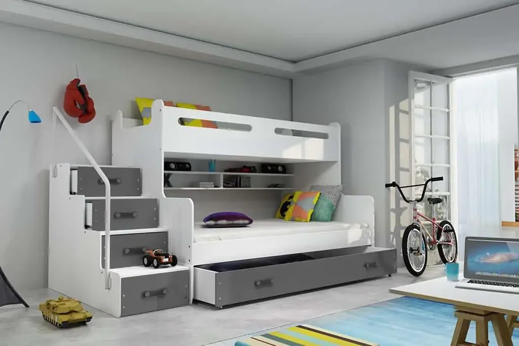 Parametry produktu Falco Maty NEW patrová postel s úložným prostorem – bílá/grafit