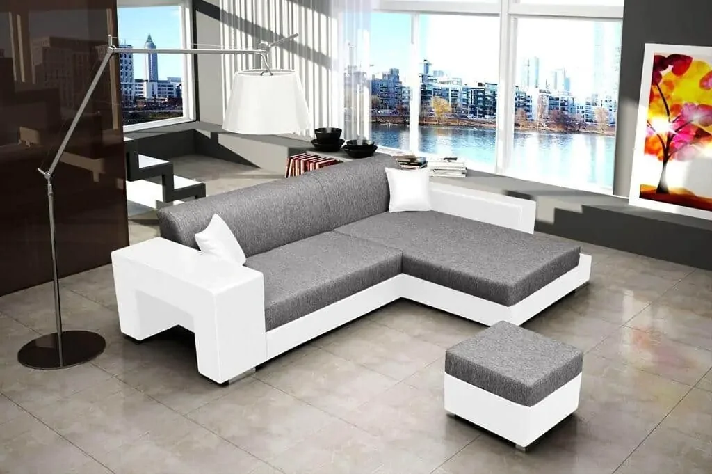 Rozkládací sedací souprava Oskar s taburetem a úložným prostorem se hodí do každého interiéru. Její rozkládací mechanismus vytváří pohodlné lůžko pro občasné spaní a zároveň poskytuje praktický úložný prostor. Komfort sezení zajišťují faliste pružiny ve spojení s kvalitní PUR pěnou. Potahová kombinace látky a EKO kůže je nabízena v několika barevných provedeních. V ceně jsou taburet 45x45 cm a dva malé polštářky; ostatní dekorace na obrázku není součástí nabídky. Doplňková výhoda spočívá v snadné údržbě a dlouhé životnosti materiálů, které se hodí do různých stylů interiéru.