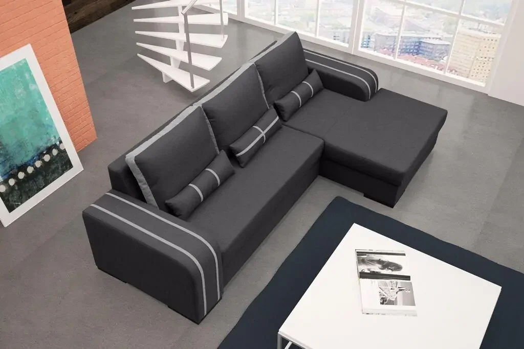 Rohová sedačka Perry v sobě spojuje moderní design a působí jako výrazný prvek v každém interiéru. Je rozkládací a nabízí praktický úložný prostor, do kterého uložíte ložní prádlo či doplňky. Po rozložení vznikne dostatečně velké lůžko pro občasné spaní a poskytnete tak hostům pohodlné přespání. Výplň sedáku tvoří kombinace faliste pružin a kvalitní PUR pěny, která zaručuje pohodlné a dlouhodobě komfortní sezení. Potah je z kvalitní látky se stylovým tónovým akcentem a k dispozici jsou různé barevné varianty, aby seděla vašemu interiéru. V ceně jsou zahrnuty 3 velké opěrné polštáře a 3 malé bederní polštářky; dekorativní prvky na obrázku nejsou součástí nabídky. Tento kousek je skvělou volbou pro každodenní používání i občasné návštěvy, díky snadnému rozkládání a stabilní konstrukci. Navíc si vyberete z několika barevných variant, které umožní sladit sedačku s vaším stylem a výzdobou.