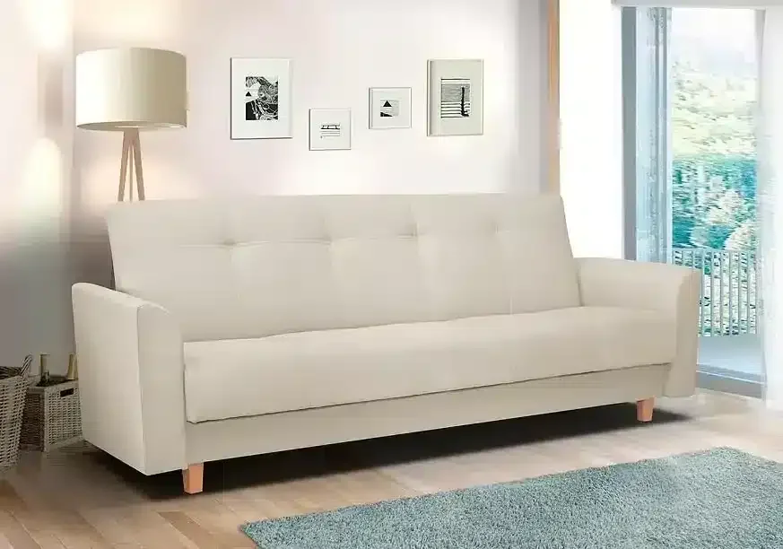 Pohovka Gala od Falco potěší milovníky retro designu svým výrazným vzhledem i praktickými řešeními. Je rozkládací a nabídne úložný prostor, takže postel pro návštěvy nebude nutná. Sedák kombinuje pružiny Bonnell s kvalitní PUR pěnou pro komfortní sezení i občasný nocleh. Retro půvab podtrhují dřevěné nožky a prošití s vtahy, zatímco látka ve jemných pastelových tónech je k dispozici ve čtyřech atraktivních odstínech. K dispozici je i klasická varianta 3R+1+1 a vybrat si můžete podle prostoru i vkusu. Rozkládací plocha po rozložení činí 120x190 cm. Dekorace na fotkách nejsou součástí ceny.