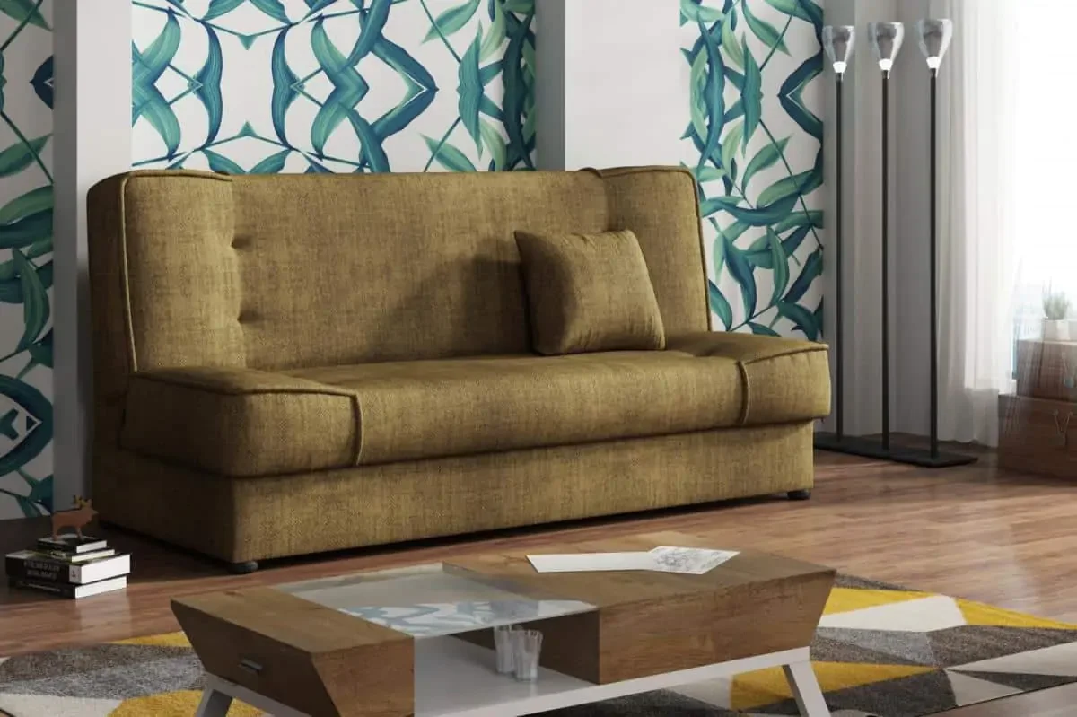 Pohovka Rallye má nadčasový styl, který se hodí do moderních i klasických interiérů a výborně využije i menší prostory. Je rozkládací a nabízí praktický úložný prostor, do kterého lze pohodlně uložit ložní prádlo či sezónní doplňky. Sedačka je vyplněna kombinací pružin a kvalitní PUR pěny, což zaručuje oporu při sezení i komfort při občasném spaní. Snadné rozložení zajišťuje klik-klak mechanismus a po rozložení vznikne lůžko o rozměrech 120x195 cm. V ceně je malý dekorační polštářek; ostatní dekorace na fotografiích nejsou součástí balení.