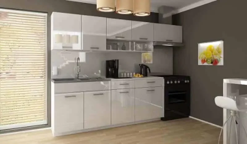 Moderní kuchyňská linka Falco Samara s rozměry 180/240 cm nabízí svěží vzhled vhodný pro panelákové kuchyně i prostornější domácnosti. Korpusy jsou bílé a dvířka s vysokým leskem mohou mít několik odstínů, díky čemuž si ji snadno sladíte s dalším zařízením.