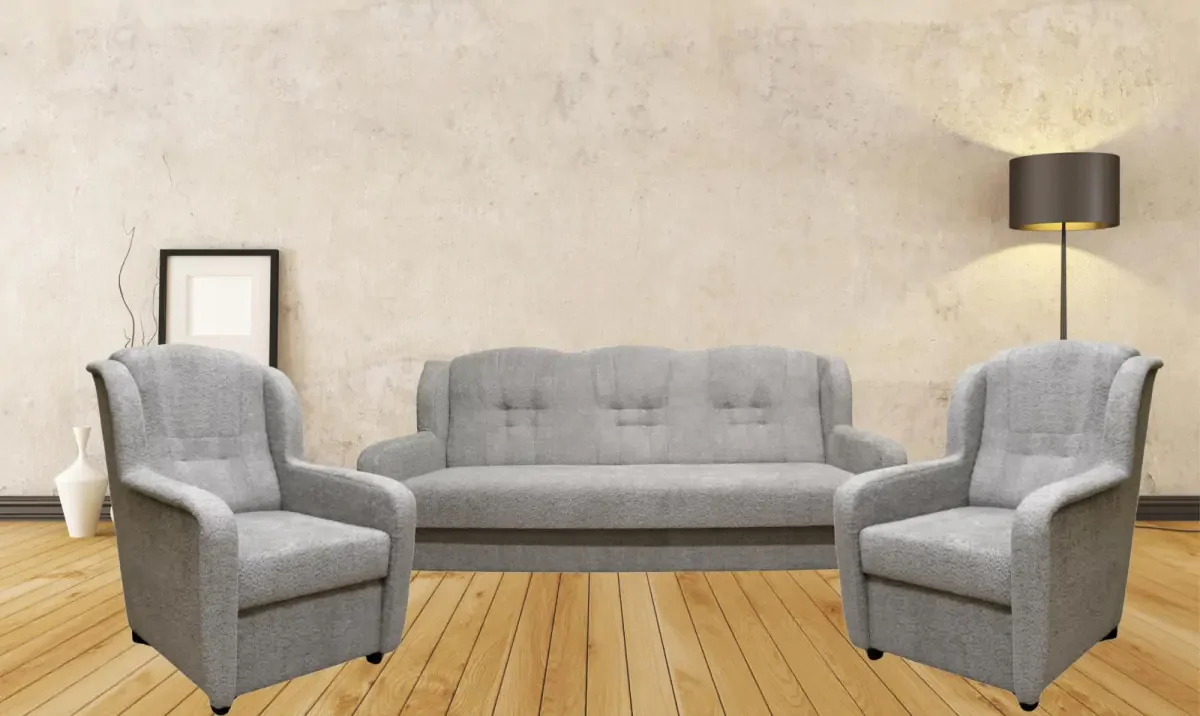 Ušák Falco Lucia je nadčasová klasika medzi sedacími soupravami v provedení 3+1+1. Nabízí pohodlí i praktičnost pro každodenní používání. Sedačka je rozkládací a má rozkládací systém s úložným prostorem pro ložní prádlo a sezónní potřeby. Snadné rozkládání díky bezproblémovému systému klik-klak zaručí pohodlné lůžko pro návštěvy. Potah je z kvalitní látky a je k dispozici v několika barvách včetně světle šedé, která se hodí do mnoha interiérů. Výplň sedáků tvoří pružiny v kombinaci s kvalitní PUR pěnou pro pevné a pohodlné sezení. Uvedená cena platí za rozkládací trojsed s dvěma křesly. Rozměry trojsedu: šířka 215 cm, výška 100 cm, výška sedu 40 cm, hloubka sedu 57 cm, celková hloubka 98 cm, plocha po rozložení 190×127 cm. Rozměry křesla: hloubka 90 cm, šířka 74 cm, výška 100 cm, výška sedu 41 cm, hloubka sedu 53 cm.