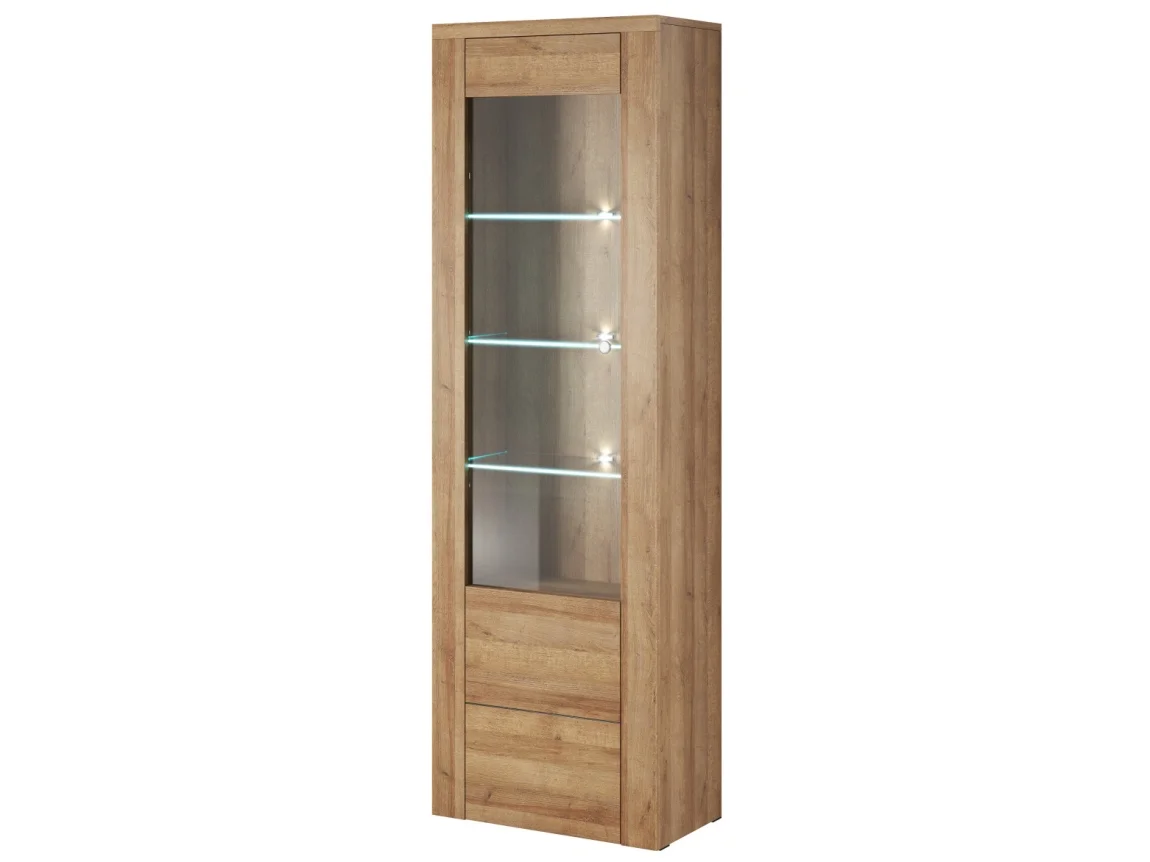 Fedra úzká vitrína – dub Riviera světlý Regály