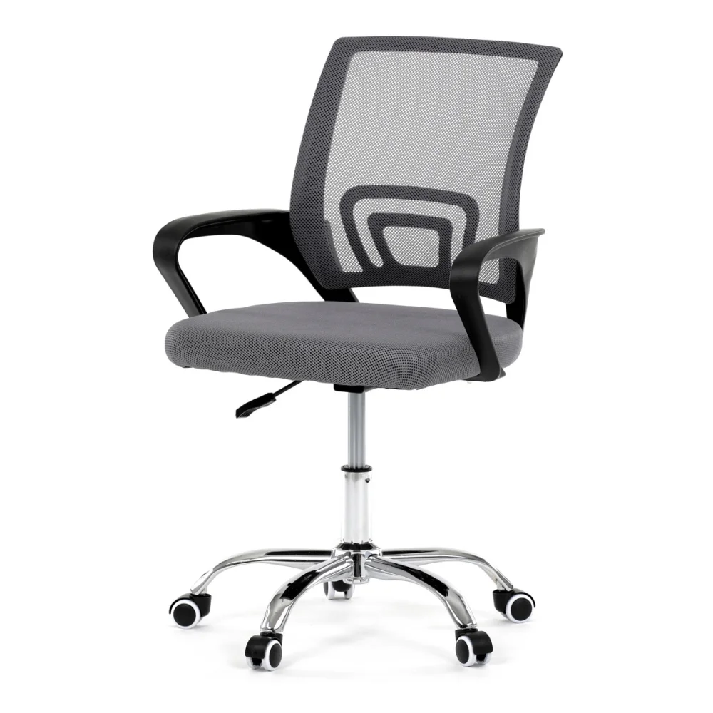FEME šedá kancelářská židle kombinuje moderní vzhled s pohodlím pro každodenní práci. Opěrák je potažen prodyšnou šedou síťovinou, která zajišťuje ventilaci a pohodlnou oporu zad i při dlouhém sezení. Konstrukce spoléhá na pevné černé plastové područky a stabilní chromový kříž s kolečky, které usnadňují pohyb po kanceláři. Rozměry sedu 48 × 40 cm a celkové 58 × 54 × 92 cm usnadňují volbu místa v prostoru. Nosnost až 110 kg a houpací mechanismus umožňují pohodlné sezení a snadné nastavení podle potřeb. Dodává se v demontu.