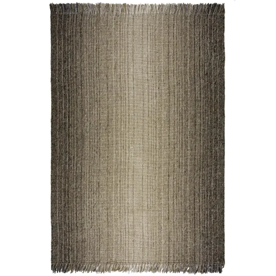 Základ tvoří nízké jutové smyčky, propletené výraznými barevnými vlákny z polyesteru a vlny, čímž vzniká efektní 3D dojem. Uprostřed dominuje ombre motiv – světlejší střed se postupně mění na tmavší odstín po okrajích. Na kratších stranách zaujmou husté třásně, které dotvářejí stylový vzhled. Oboustrannost je dalším benefitem, díky níž lze koberec obrátit a prodloužit jeho životnost. Materiál kombinuje jemnost vlny s odolností jutových vláken, což z něj činí pohodlný kousek vhodný pro každodenní používání. Díky neutrálnímu šedému odstínu se snadno sladí s různými barevnými doplňky a stylově doplní obývací pokoj i ložnici. Údržba je jednoduchá – stačí pravidelně vysávat a vyvarovat se rotačního kartáče, který by mohl povrch poškodit.