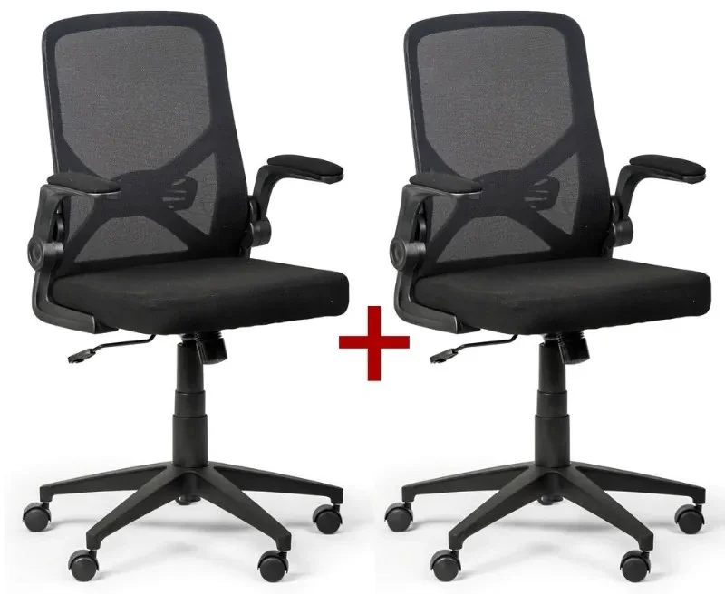 Díky houpací mechanice s nastavitelnou protiváhou si můžete židli přizpůsobit svým potřebám a pohodlí. Čalouněné odklápěcí područky lze snadno složit, když je potřebujete uvolnit, nebo je využít pro podporu paží. Šířka sedáku 48 cm a hloubka 48 cm poskytují dostatek prostoru, zatímco výška opěráku 52 cm zajišťuje správnou oporu zad. Stabilitu zajišťuje odolný plastový kříž s nosností až 130 kg a kolečka vhodná pro měkké podlahy jako koberce nebo lino. Židle je vybavena výškově nastavitelné bederní opěrkou, která pomáhá udržovat správné držení těla. Tento ergonomický model je skvělou volbou pro kancelář i domácí pracovní prostor, a navíc při koupi získáte speciální akci - druhou židli ZDARMA, což je ideální řešení pro celou rodinu nebo kolektiv.