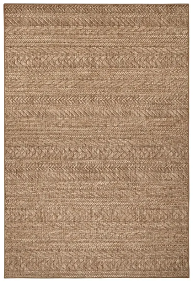 Béžovo-hnědý bouclé koberec Forest 103995 s krátkým smyčkovým vlasem vnáší do interiéru i exteriéru univerzální styl a praktickou údržbu. Snadná údržba a krátký vlas usnadňují čištění a zvyšují odolnost vůči nečistotám. Je vyroben z 100% polypropylenu a po obšití ze všech stran zajišťuje pevnou konstrukci s delší životností. Pro venkovní prostory, jako jsou balkóny, terasy či okolí bazénu, je díky své odolnosti skvělou volbou. Upozornění: po vybalení z role mohou na kobercu zůstat volné vlnky; po několika dnech se vyrovnají a koberec opět získá hladký tvar. Vhodná volba pro moderní i venkovní prostory, která snadno dotvoří vzhled každé místnosti a terasy.