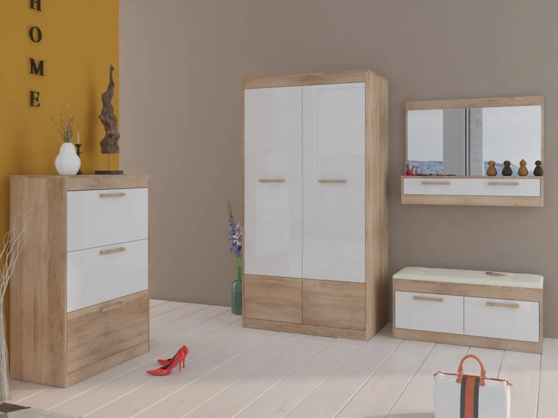Předsíňová stěna GATTON 2 v provedení dub sonoma s bílým leskem kombinuje styl a praktičnost do vstupního prostoru. Jednotlivé díly lze kupovat samostatně a sestavu si tak poskládáte přesně na míru.