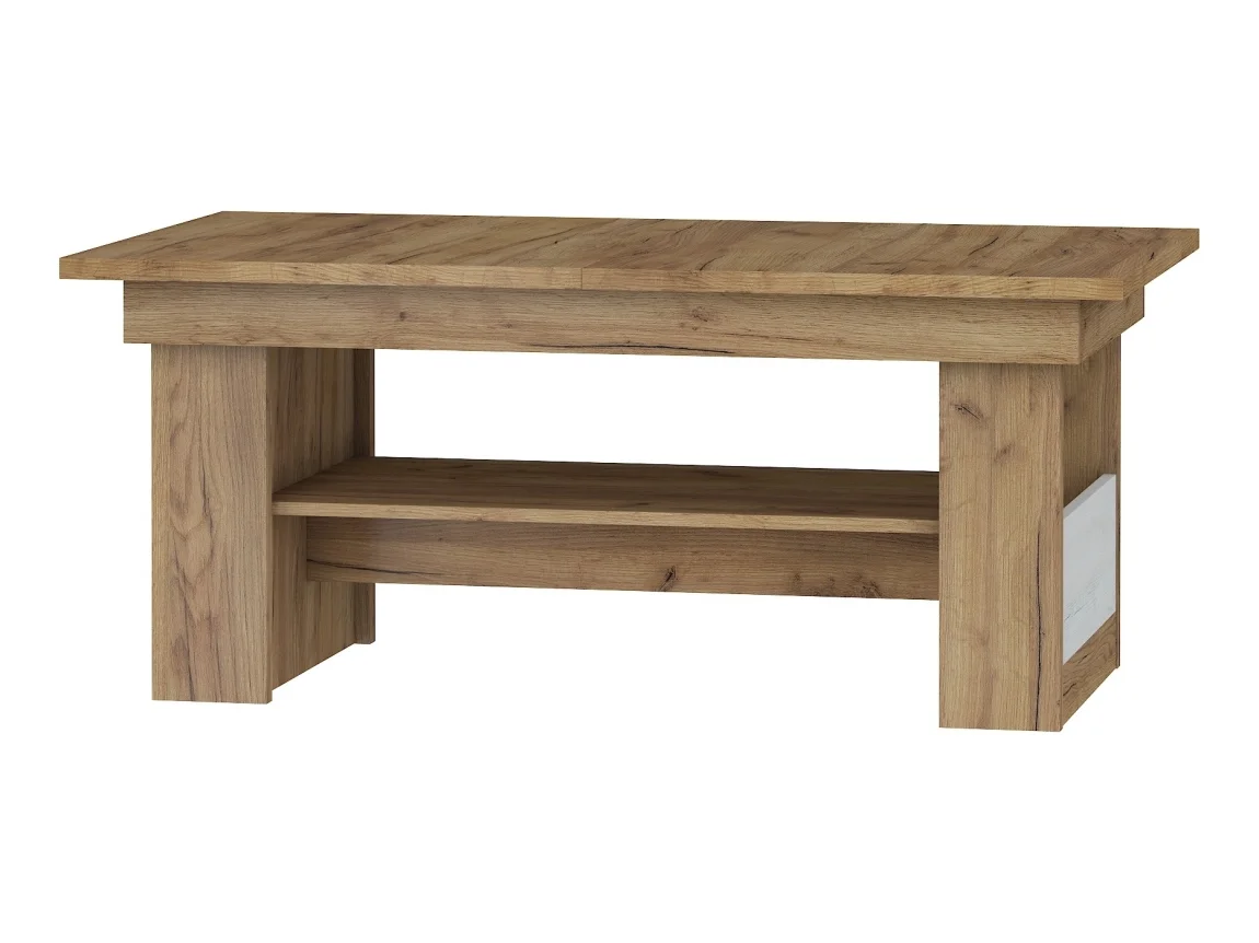 Rozkládací konferenční stolek GATTON v dvoubarevném provedení craft zlatý / craft bílý nabízí praktické řešení pro moderní obývací prostor. Základní rozměr činí 125 × 53 × 68 cm a po rozložení dosahuje 170 × 53–69 × 68 cm, což umožňuje rychle zvětšit pracovní plochu podle potřeby. Deska je vyrobena z LTD a má ABS hrany, což zajišťuje dlouhou životnost a snadnou údržbu. Dodáváno v demontu a se zárukou 5 let. Jeho stabilní konstrukce zajišťuje bezproblémové používání i při větší zátěži. Díky snadné montáži a variabilním rozměrům se hodí do menších bytů i pro časté přeskládání interiéru.