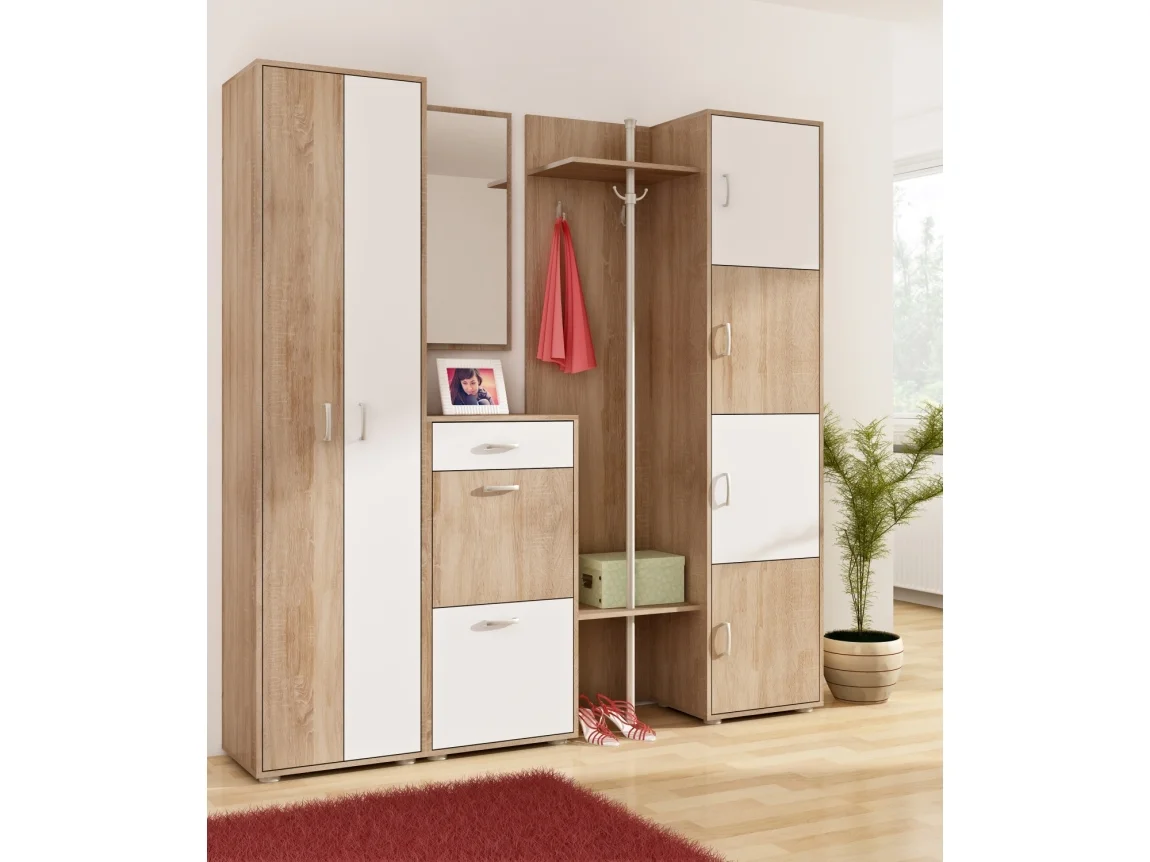GAWLER Předsíňová stěna dub sonoma/bílá Předsíňové stěny