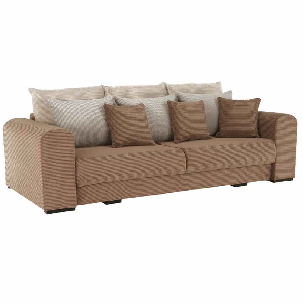 Rozměry pohovky jsou 253 cm na šířku, 121 cm na výšku a 80 cm do hloubky; po rozložení vzniká plocha na spaní 165 x 200 cm, tedy plnohodnotná matrace pro pohodlný spánek. Skládací mechanismus zajišťuje variabilní využití jako prostorná pohovka i pohodlné lůžko. Výška sedu činí 41 cm; hloubka sedu se polštáři je 35/60/75 cm, bez polštářů 103 cm. Prostor pod pohovkou má výšku 2 cm nad podlahou. Nosnost na jednu osobu je 90 kg. Výplň tvoří kombinace faliste pružin a PUR pěny. Pohovka disponuje úložným prostorem. V balení najdete šest dekorativních polštářů a tři opěrné polštáře. Dodává se v demontu. Možnost objednat v 7 barevných provedeních látky Lincoln za cenu 18 990 Kč. Při individuální objednávce je nutná záloha 20 %, po jejím uhrazení bude objednávka zařazena do výroby a dodací lhůta činí 8–10 týdnů. Uspořádání barev na polštářích musí být dodrženo; malé polštáře by měly ladit s pohovkou a barevnou kombinaci velkých a středních polštářů lze vybrat podle vzorníku. Navíc oceníte velkou úložnou plochu pro ložní prádlo a sezónní věci a díky rozkládacímu mechanismu bude pohovka spolehlivým místem pro hosty.