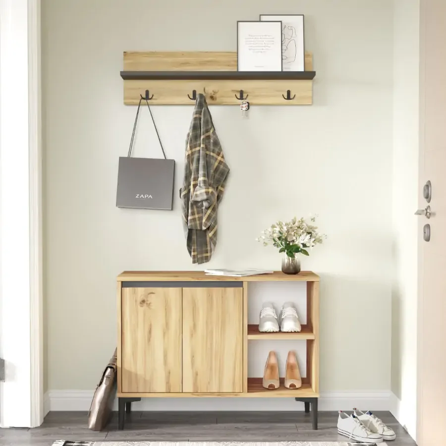 Hledáte kompaktní a stylové řešení pro vstupní prostor? Předsíňová sestava GLENC nabízí praktické uspořádání s rozměry 68.6 × 90 × 35 cm, díky nimž šetří místo, aniž by působila přeplněně. Vyrobena je z 18 mm LTD desek, které spojují přirozený odstín dubu Left s tmavým antracitovým prvkem pro moderní vzhled. Loftový industriální dojem dodává vašemu vstupu charakter a hodí se ke současnému interiéru. Kombinace barev Dub Left a Antracit snadno ladí s širokou škálou dekorů a vytváří útulný, ale stylový dojem. S tímto kusem získáte efektivní úložný prostor pro kabáty, boty i drobný nábytek, a díky jeho kompaktním rozměrům se vejde i do menších předsíní. Objednejte si ji nyní a dopřejte si praktický, vzhledný a odolný doplněk do domova. Zásilku vám pošleme v demontu, montáž zvládnete rychle a jednoduše.