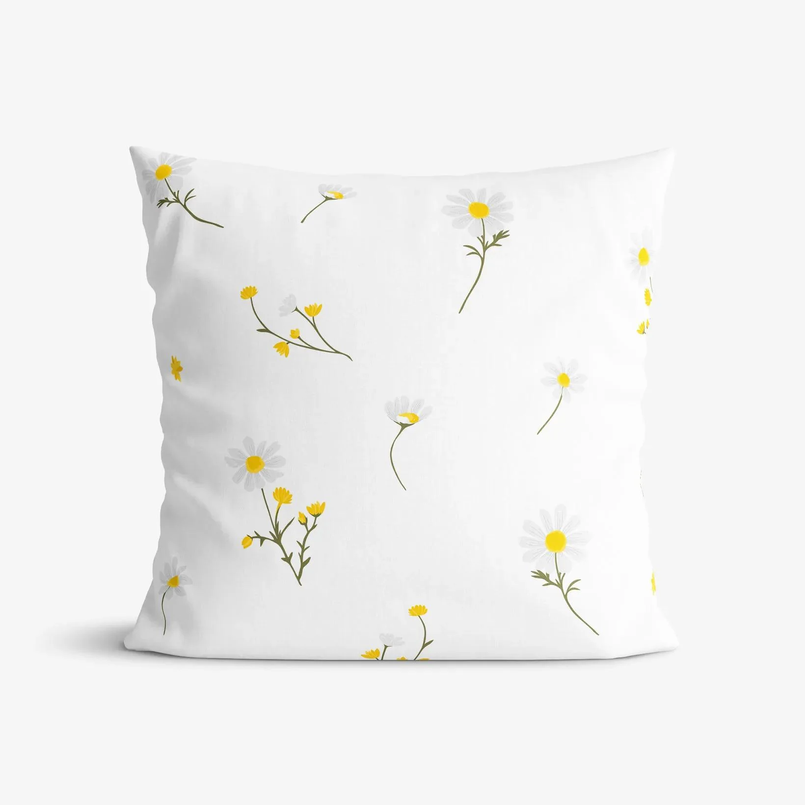 Obohaťte svůj interiér příjemným bavlněným povlakem na polštář s elegantním motivem heřmánku na čistě bílém podkladu. Obě strany povlaku zdobí stejný květinový design, který dodá vašemu prostoru svěží a harmonický vzhled.