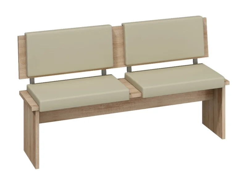 GURLAN Velká lavice kombinuje světlý dub sonoma s béžovou ekokůží, výsledný vzhled je moderní a nadčasový. Konstrukce je vyrobena z laminátu tloušťky 16 mm s ABS hranami o šířce 0,6 mm, což zajišťuje dlouhou životnost a snadnou údržbu.