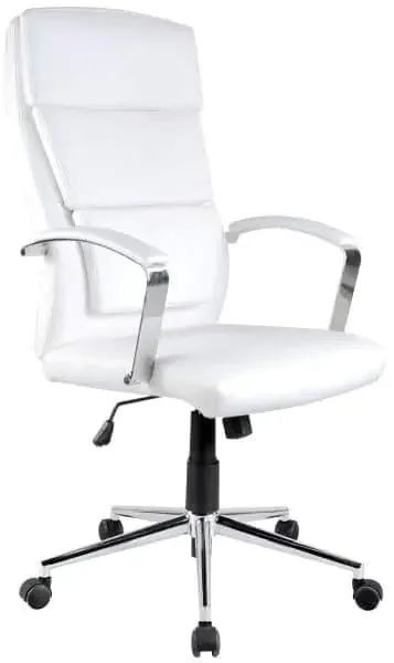 Halmar Aurelius nabízí pohodlné kancelářské křeslo s výškovým nastavením, houpacím mechanismem a odolnou kovovou konstrukcí. Sedák i opěrák jsou potaženy bílou ekokůží, zatímco rám, područky a kříž jsou kovové, přičemž horní část područek je polstrovaná pro ještě lepší komfort.