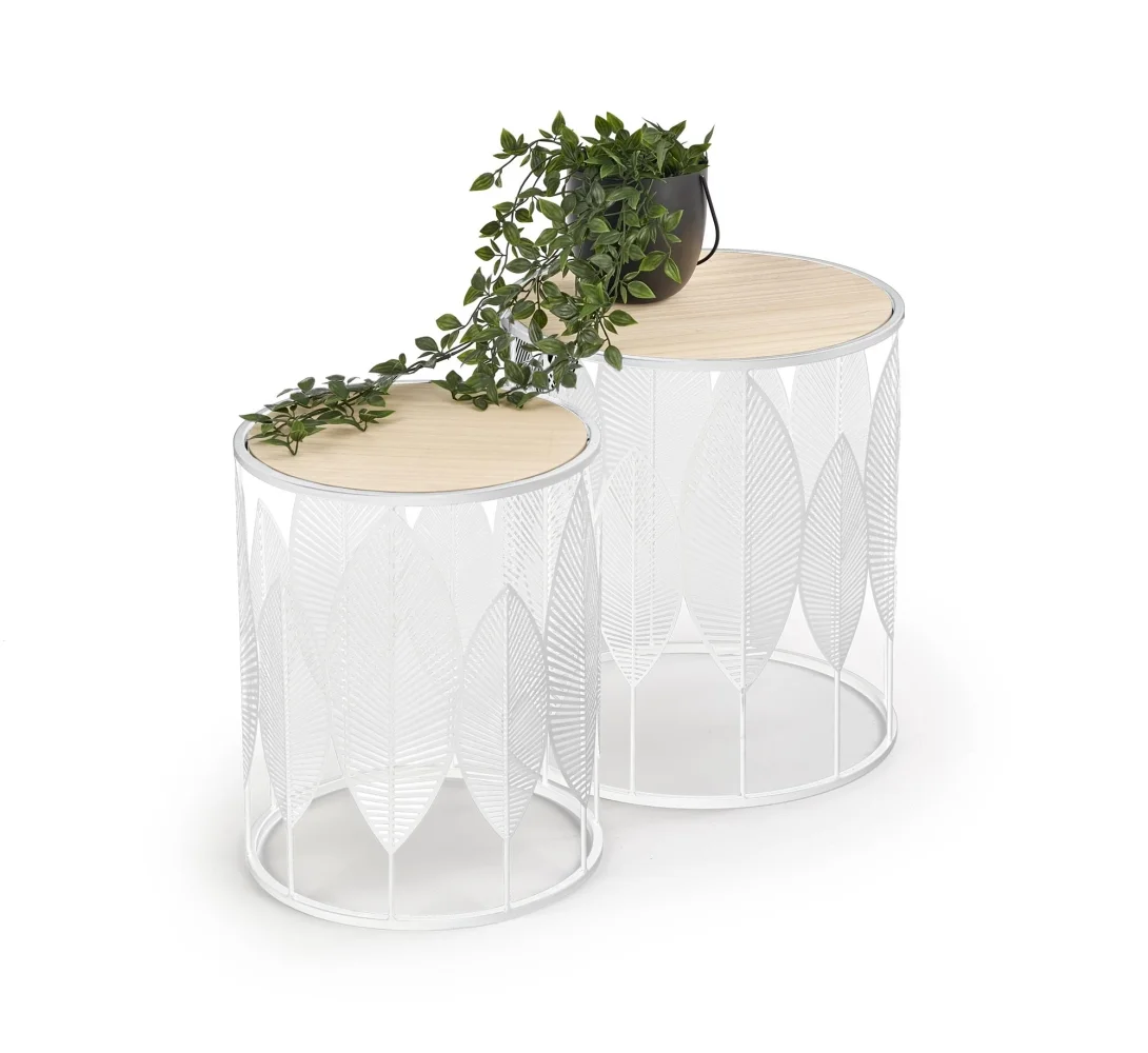 HIMANI: Set dvou odkládacích stolků – bílá a přírodní dub Konferenční stolky