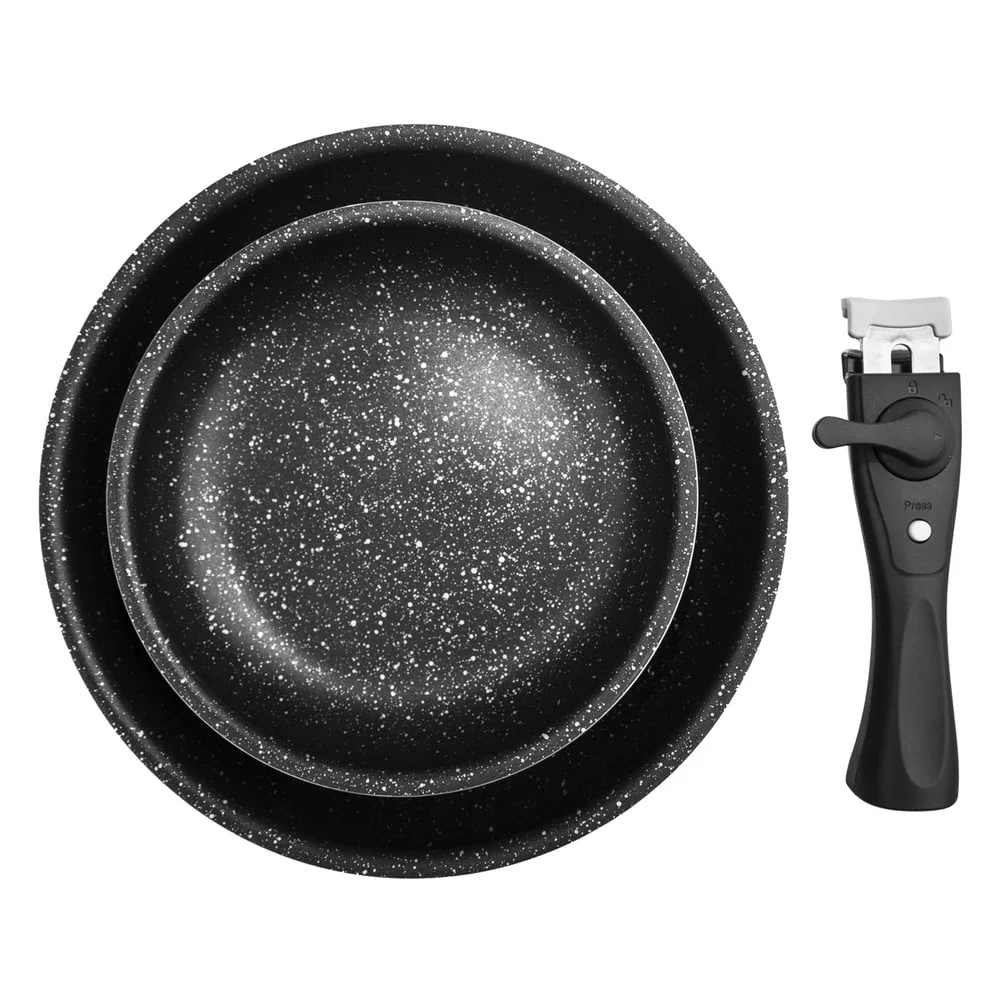 Set hliníkových pánví Orion Grande Combi nabízí ideální řešení pro každou kuchyni. Díky špičkovému nepřilnavému povrchu Pfluon Granit se nemusíte obávat připalování a s minimem tuku připravíte zdravější pokrmy. Tyto pánve jsou kompatibilní se všemi typy vařičů, včetně indukce, což zaručuje jejich univerzálnost. S odnímatelnou rukojetí lze pánve snadno vložit do trouby, což rozšiřuje možnosti vaření a pečení. Navíc sada obsahuje dvě pánve o průměru 20 a 26 cm, takže si hravě poradíte s přípravou různých pokrmů. Tento praktický set je skvělou volbou pro moderní domácnosti, které hledají kvalitní a univerzální nádobí.