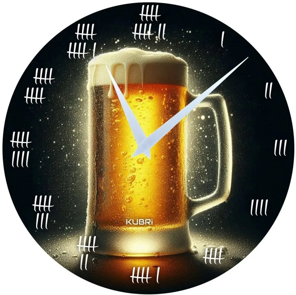 Vkusné nástěnné hodiny od českého výrobce s originálním pivním motivem, které dokonale ozvláštní váš domov nebo hospodu. Vyrobené v České republice z odolného materiálu o síle 3 mm, s precizním tiskem přímo na povrch, nikoliv samolepkou. Díky nejmodernějšímu tichému strojku vám nebudou rušit při odpočinku či spánku.
