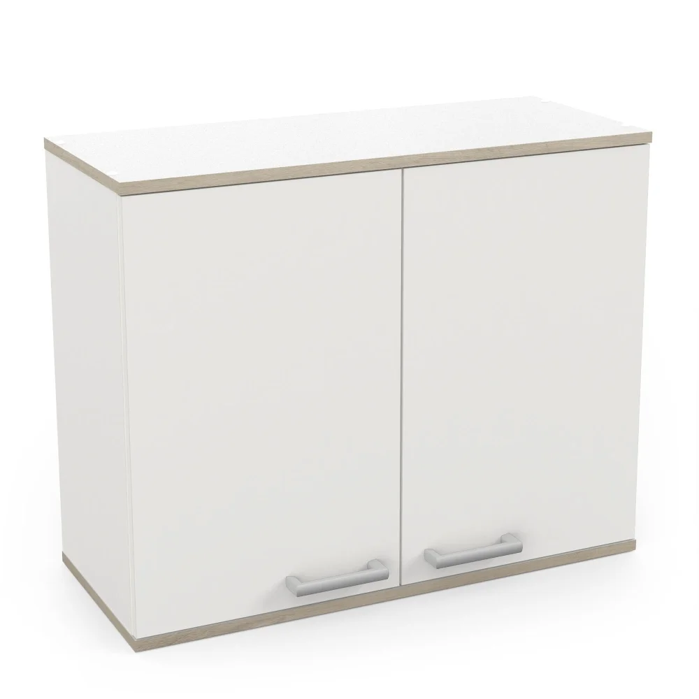 Horní skříňka HOMUTA kombinuje dekor dub Kronberg s matným bílým povrchem pro svěží a moderní vzhled kuchyně. Rozměry činí 78,2 x 63,2 x 32,8 cm (š x v x h) a konstrukci tvoří 16 mm dřevotřísková deska s hranami Kronberg.