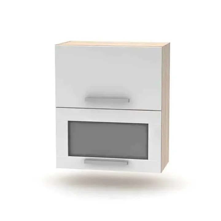 Elegantní výklopná skříňka se sklem s dvěma dvířky, které se otevírají vyklápěním nahoru, nabízí pohodlný přístup k uloženým věcem. Dvířka zdobí praktická kovová úchytka pro snadné a tiché otevírání. Vyrobena je z DTD laminátu v kombinaci dub sonoma / bílá, což skvěle zapadá do moderních bytových interiérů. Nosnost police činí 5 kg a jde o kvalitní slovenský výrobek dodávaný v demontu, který jednoduše smontujete doma.