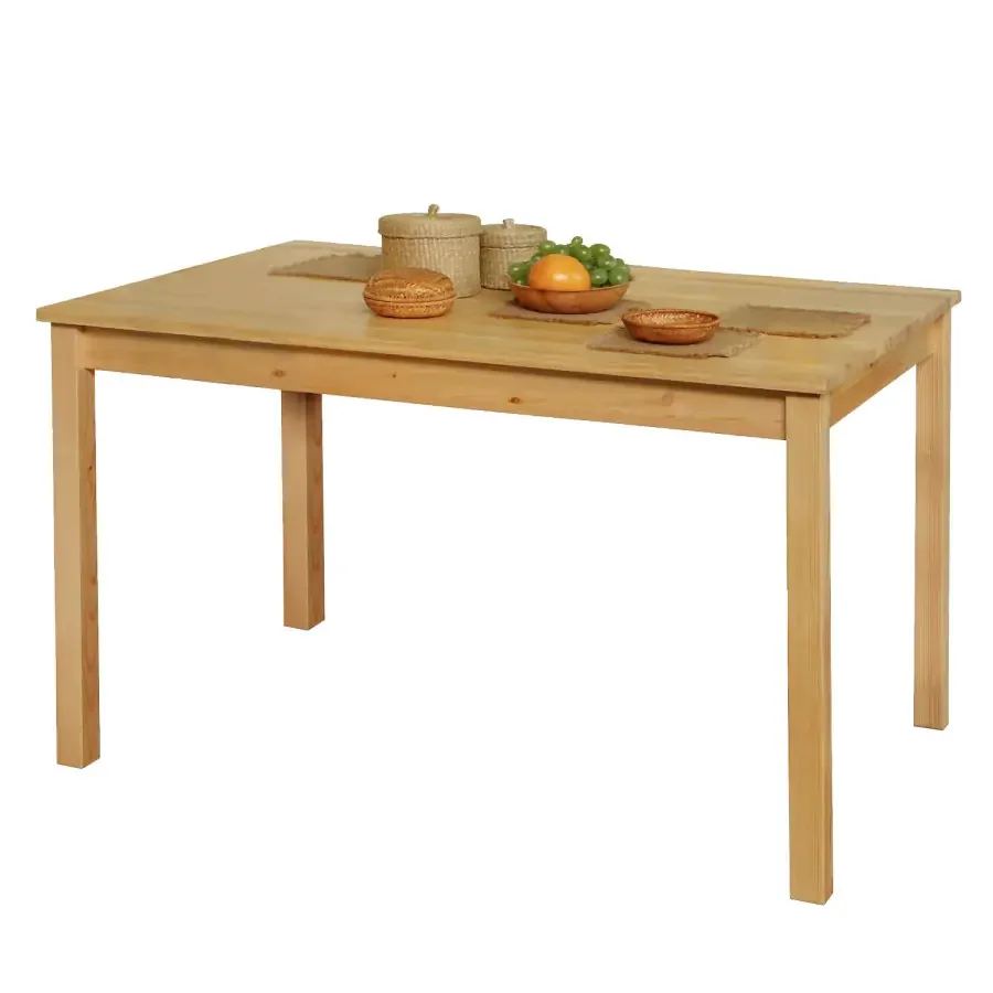 Provedení: Obdélníkový, pevný jídelní stůl je vyroben z masivní borovice s přírodně lakovaným povrchem v přírodním odstínu. Jeho nadčasový design se hodí do moderních i tradičních interiérů kuchyní a jídelních koutů. Stůl se dodává v demontu a samostatně, což usnadňuje dopravu i montáž v prostoru. Pro kompletní sestavu doporučujeme doplnit stůl vhodnými jídelními židlemi z naší široké nabídky. Přirozený povrch je odolný vůči běžnému provozu a snadno se čistí; stačí vlhký hadřík. Díky neutrálnímu odstínu se snadno kombinuje s různými doplňky a barvami interiéru.