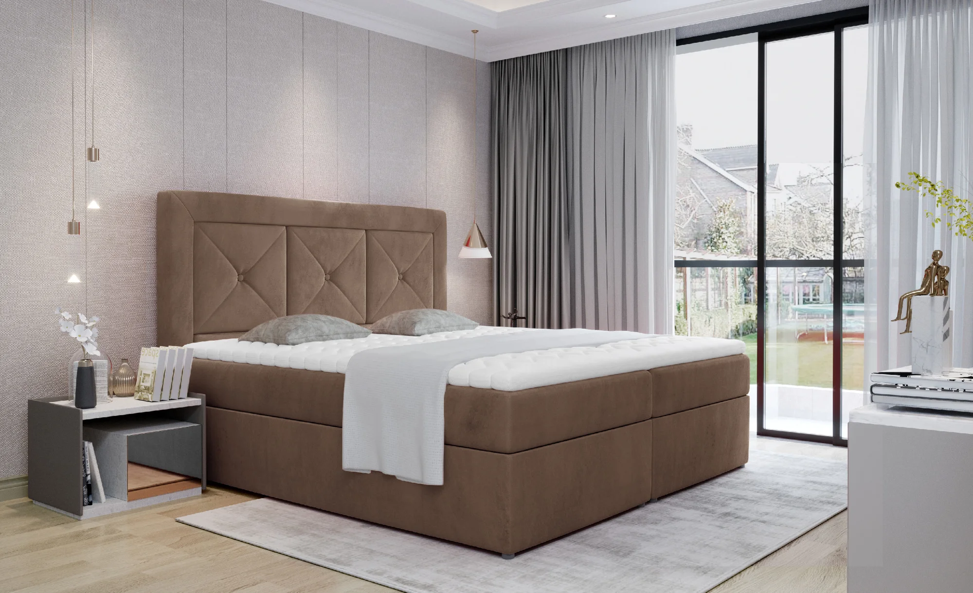 Součástí je 15 cm vysoká bonellová matrace a 4 cm vysoký topper pro pohodlný spánek. Hlavními devizami Idris jsou dvě prostorné úložné boxy na ložní prádlo, výrazné prošívané čelo a stylové černé nohy, které spolu vytvářejí luxusní dojem. Nabízí také širokou škálu barevných variant, díky nimž ji jednoduše sladíte s různými interiérovými stylmi. Pokud hledáte klasiku s nádechem glamour, Idris je ideální volba.