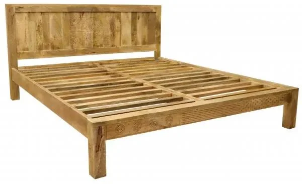 Elegantní indická postel Manu o rozměrech 180x200 cm je vyrobena z pečlivě vybraného mangového dřeva, které zajišťuje pevnost a přírodní vzhled. Tento kus nábytku nejenže poskytuje komfortní odpočinek, ale také dodá vaší ložnici exotický nádech a jedinečný charakter.